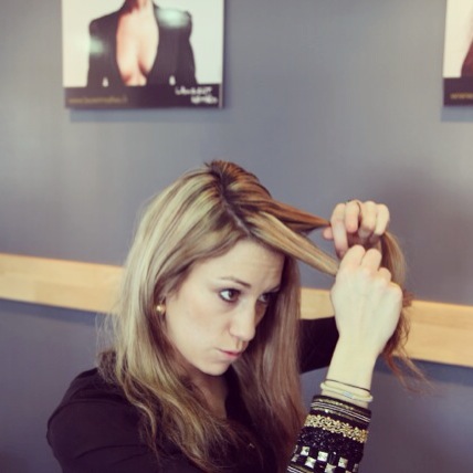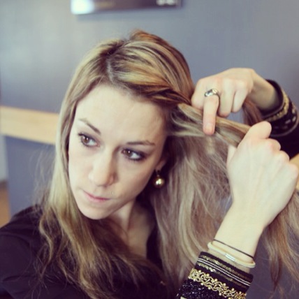 - Commencez par prendre 2 mèches sur le côté souhaité.